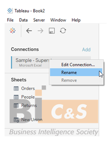 데이터 원본에 연결할 때 Tableau Desktop에서 사용할 이름을 지정할 수 있습니다.